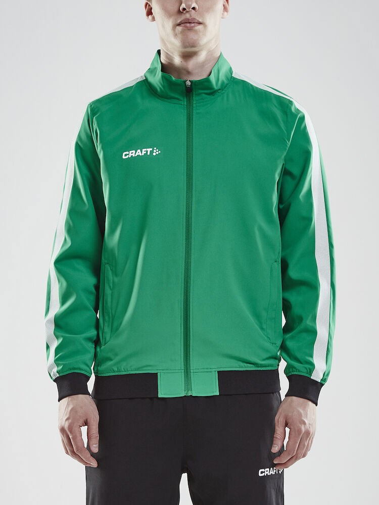 Woven, wind-resistant warm-up jacket with soft mesh lining for optimal comfort and function. Rubber print on sleeves.