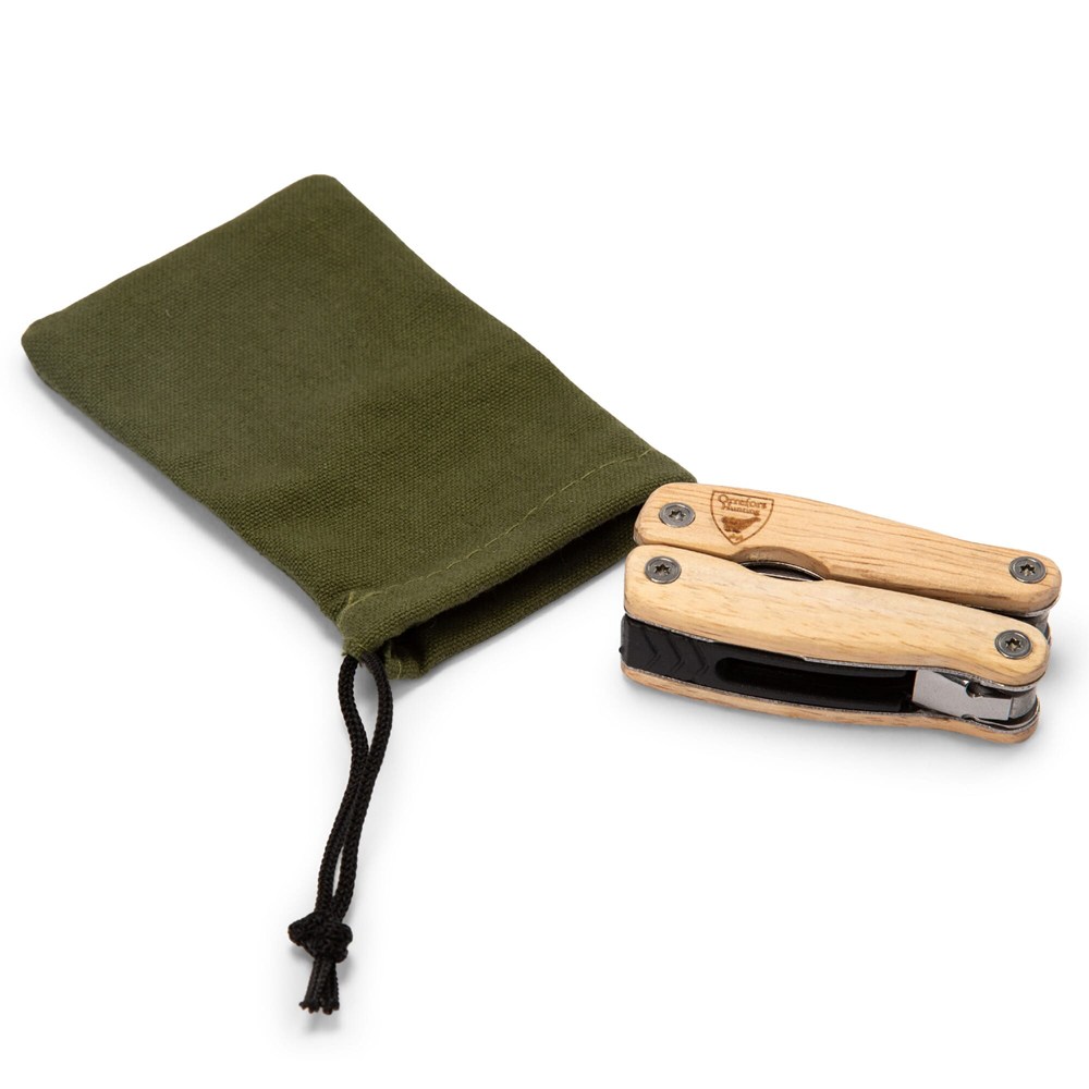 Een kleine en praktische multi-tool van Orrefors Hunting. Klein en flexibel om in je zak te dragen of aan een riem met het meegeleverde nylon tasje. Inclusief tang, 4 verschillende schroevendraaiers, flesopener, zaagtandmes, hobbymes, tang en nagelvijl. Wordt geleverd in een stijlvolle kartonnen doos. Orrefors Hunting producten zijn degelijke en stevige kwaliteitsproducten die je altijd en overal kunt gebruiken.