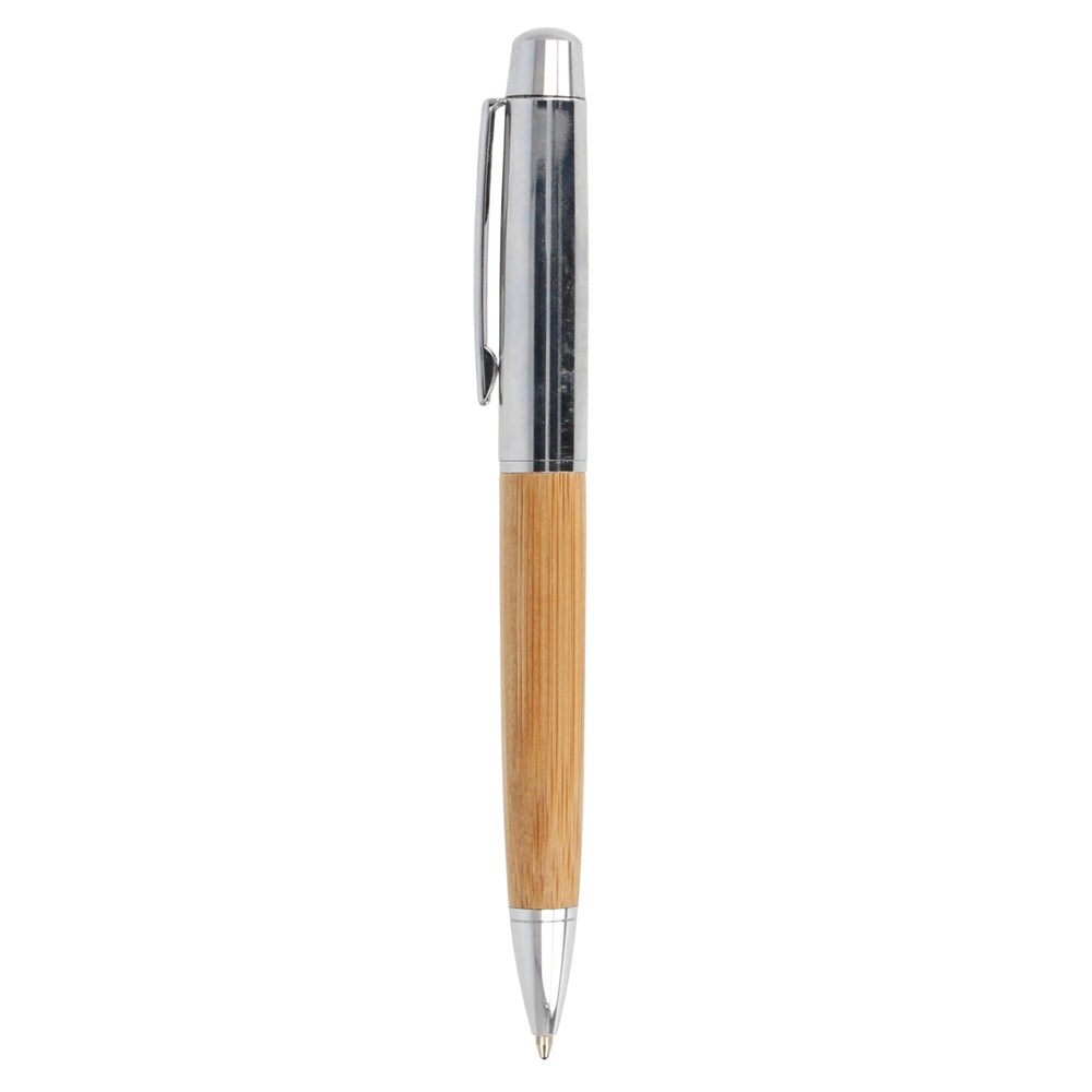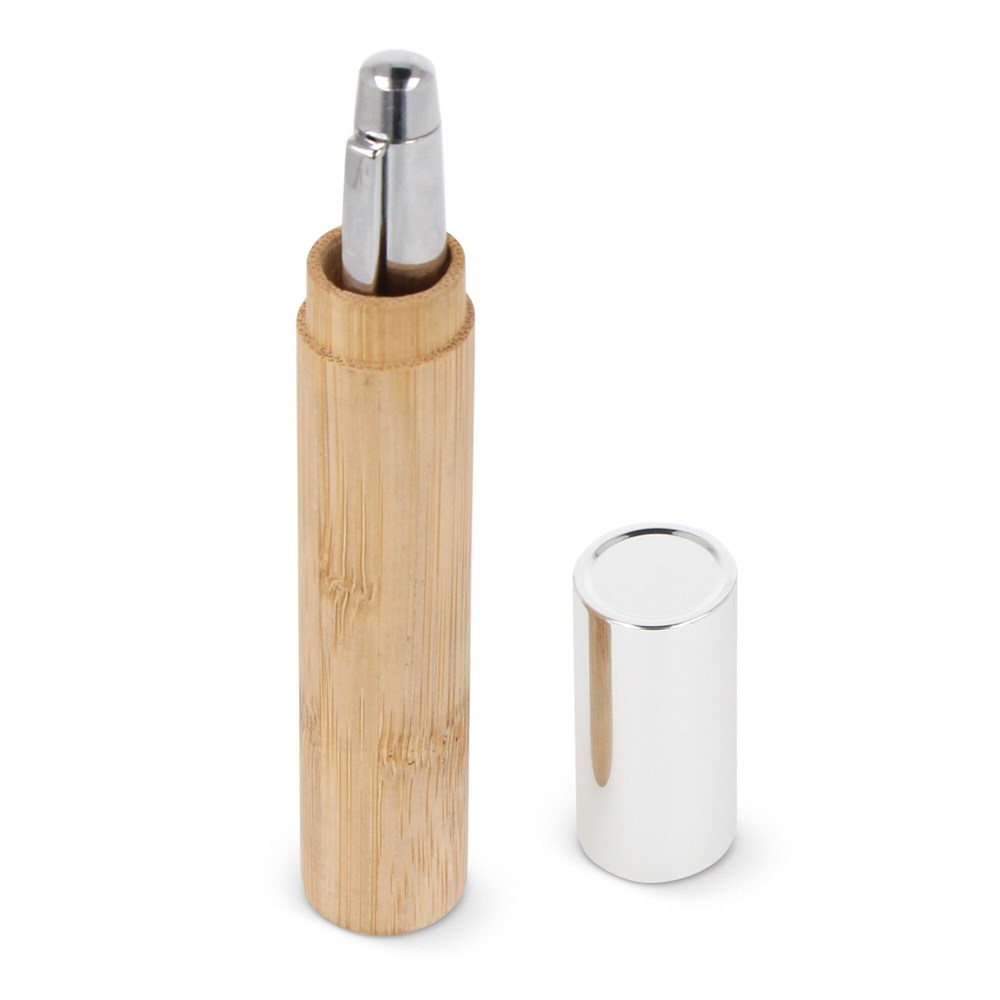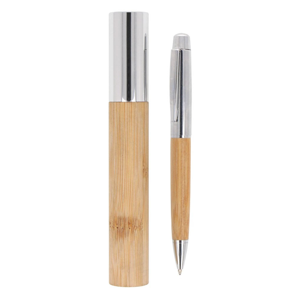 Maak kennis met onze bamboe balpen, elegant gepresenteerd in een bamboe koker. Een stijlvol en doordacht cadeau dat natuurlijke materialen combineert met schrijfcomfort.