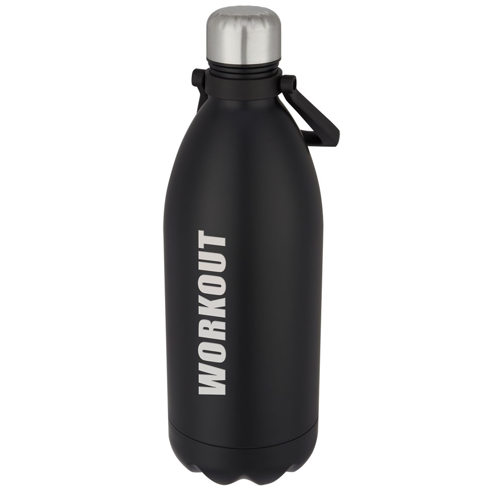 Extra grote vacuumgeïsoleerde drinkfles van roestvrij staal met een iconisch design en een comfortabel handvat voor eenvoudig meenemen. BPA-vrij, getest en goedgekeurd volgens de Duitse voedselveiligheidswetgeving (LFGB), en gecontroleerd op ftalaatgehalte conform de REACH-regelgeving. Inhoud: 1,5 liter. Handwas aanbevolen. Verpakt in een geschenkdoos van gerecycled karton. Houdt dranken tot 12 uur warm en tot 48 uur koud.