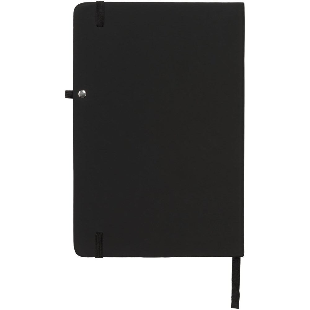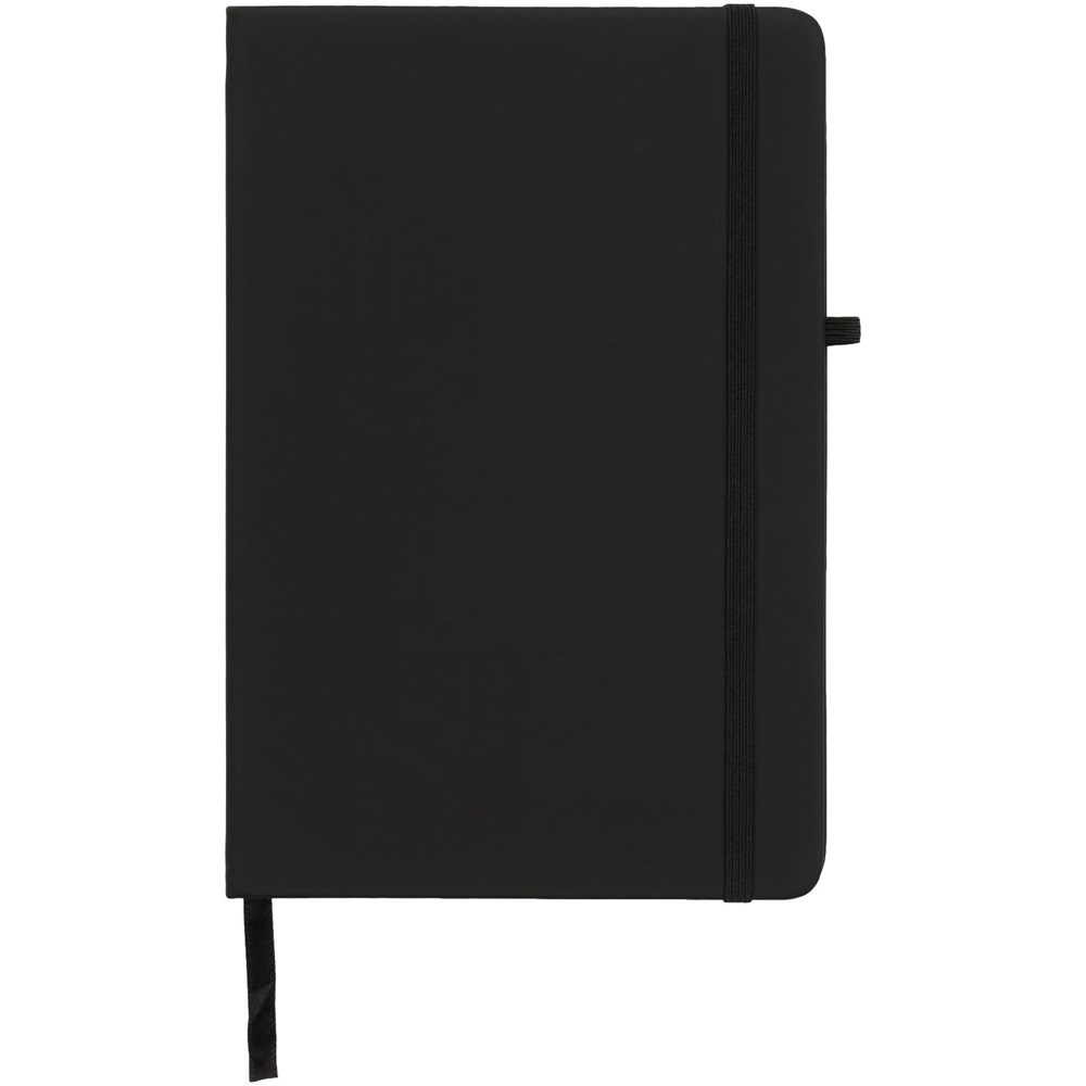 Het Noir-notitieboek heeft een harde PU omslag wat zacht aanvoelt voor een tastbare afwerking. Elk notitieboek heeft een gekleurd sluitbandje, penlus en bladwijzer. Het notitieboek bevat 96 bladen (70g/m2) crèmekleurig lijntjespapier.
