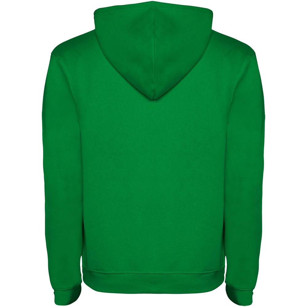 Tweekleurige hoodie met dubbele stof. Versterkte bedekte naden in de kraag en kangoeroezak. 1x1 elastaan rib in manchetten en tailleband. Verwijderbaar etiket. Het model is 120 cm en draagt maat 5/6.