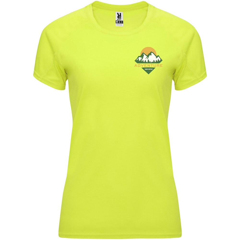Technisch raglanshirt met korte mouwen voor dames. Ronde hals met bijpassende bedekte naden. Mouwpanelen. Bijpassende overlock in het armsgat en mouwpaneel. CONTROL-DRY-stof. Verwijderbaar etiket. Technische stof. Uv-beschermingsfactor. Het model is 173 cm en draagt maat S.