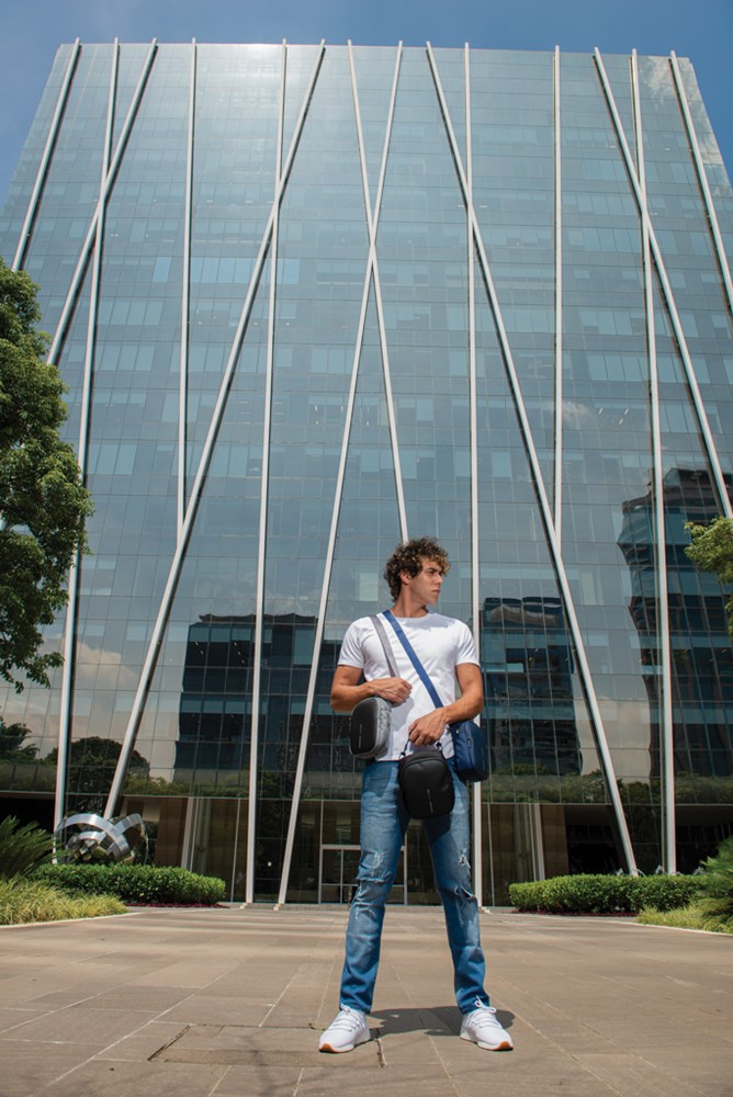 De Boxy Sling is een veelzijdige schoudertas, ontworpen om dagelijkse benodigdheden mee te nemen. De rugzak kan om de nek, over de schouder of om het middel worden gedragen. Het heeft voldoende capaciteit voor een mobiele telefoon, portemonnee of handtas, paspoort, notitieboekje en diverse andere kleine voorwerpen. Het verborgen achtervak is perfect voor het discreet opbergen van contant geld, kaarten of andere waardevolle spullen. De Boxy Sling heeft een uniek verborgen waterflesvak die kan worden weggestopt wanneer deze niet in gebruik is. Het is geproduceerd met gerecyclede materialen. Met AWARE™ tracer die het echte gebruik van gerecyclede materialen valideert.