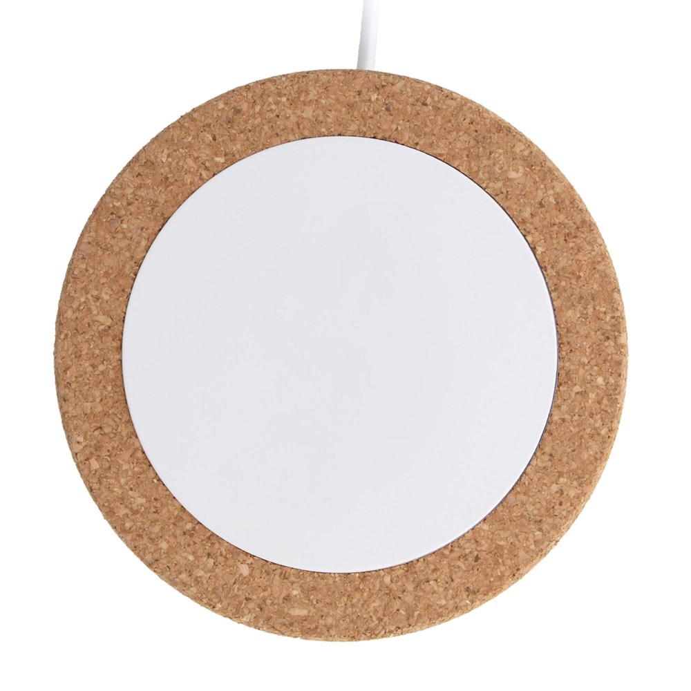 Draadloze oplader, gemaakt met kurk en gerecycled abs-materiaal. Geschikt voor mobiele telefoons die Qi ondersteunen. Output: 5W, 7.5W, 10W, 15W. Bescherming tegen te hoge temperaturen. Met groot drukoppervlak voor full colour opdruk en oplaadkabel met een lengte van 1 meter. Ideaal voor je groenere en duurzamere (thuis)kantoor.