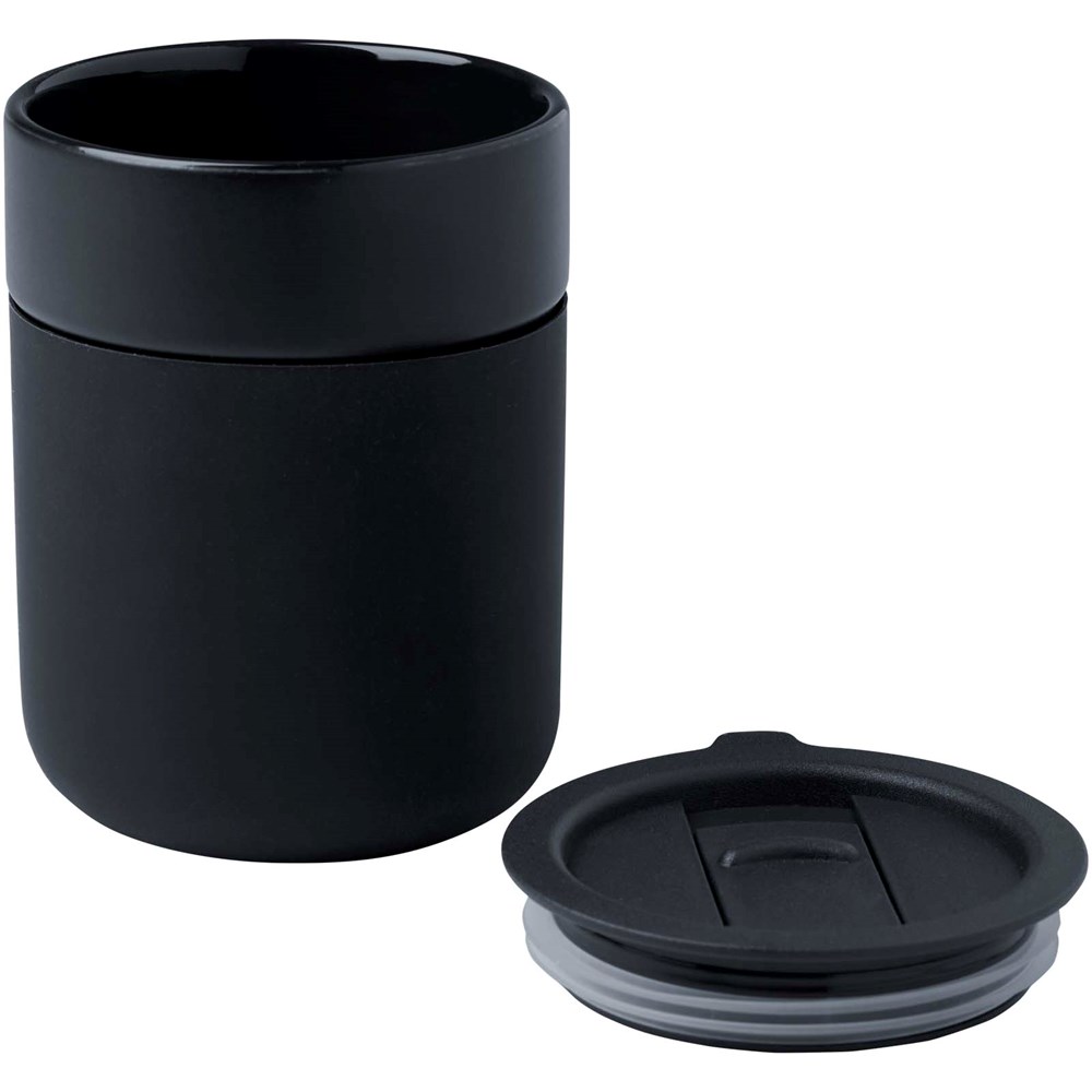Java 330 ml beker van keramiek met siliconen wikkel en plastic deksel