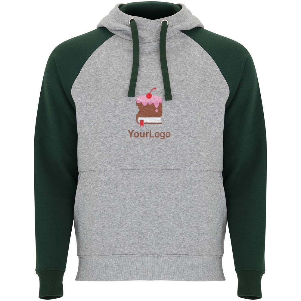 Tweekleurige unisex hoodie. Capuchon met gekruiste hals en metalen oogjes. Contrasterende binnenkant van de capuchon, trekkoord en raglanmouwen. Kangoeroezak. Manchetten en zoom van 1x1 ribgebreid elastaan. Verwijderbaar label.