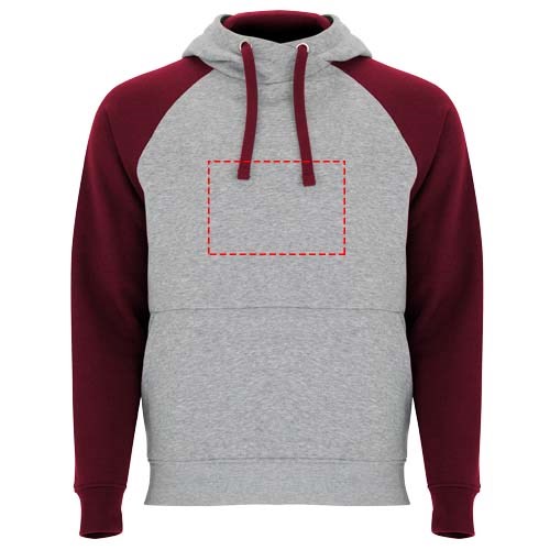 Tweekleurige unisex hoodie. Capuchon met gekruiste hals en metalen oogjes. Contrasterende binnenkant van de capuchon, trekkoord en raglanmouwen. Kangoeroezak. Manchetten en zoom van 1x1 ribgebreid elastaan. Verwijderbaar label.
