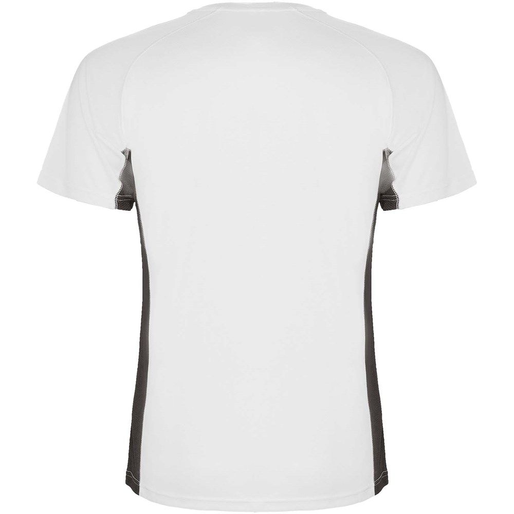 Technische en ademende stof. Een combinatie van twee polyesterstoffen: Hoofdstof van birdseye-stof, zijpanelen en binnenmouw van micro-geperforeerde stof. Ronde hals met binnenin versterkte bedekte naden. Verwijderbaar label.