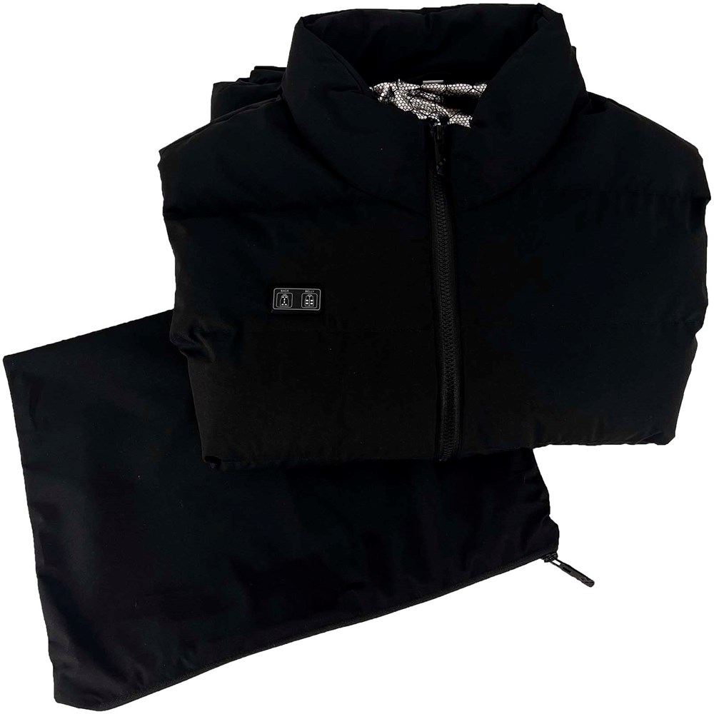 Innovatieve, veelzijdige en winddichte bodywarmer die dankzij de 11 verwarmde pads aan de voor-, achter- en bovenzijde van de bodywarmer voor een gelijkmatige warmte zorgt. U kunt kiezen tussen 3 temperatuurinstellingen (laag, medium en hoog). Vier verschillende maten zijn beschikbaar: S-M 2PX13901 (lengte 58 cm x borst 48 cm); M-L 2PX13903 (lengte 64 cm x borst 54 cm); L-XL 2PX13905 (lengte 66 cm x borst 60 cm); XXL-XXXL 2PX13906 (lengte 74 cm x borst 66 cm). De bodywarmer is ontworpen met zijritsen, zodat deze perfect aansluit op elk lichaamstype en voor mensen die hun bewegingsvrijheid willen behouden in koude weersomstandigheden. Een powerbank van 10.000 mAh is inbegrepen en al aangesloten voor eenvoudig gebruik. Verpakt in een TPU-tasje (38 x 30 cm).