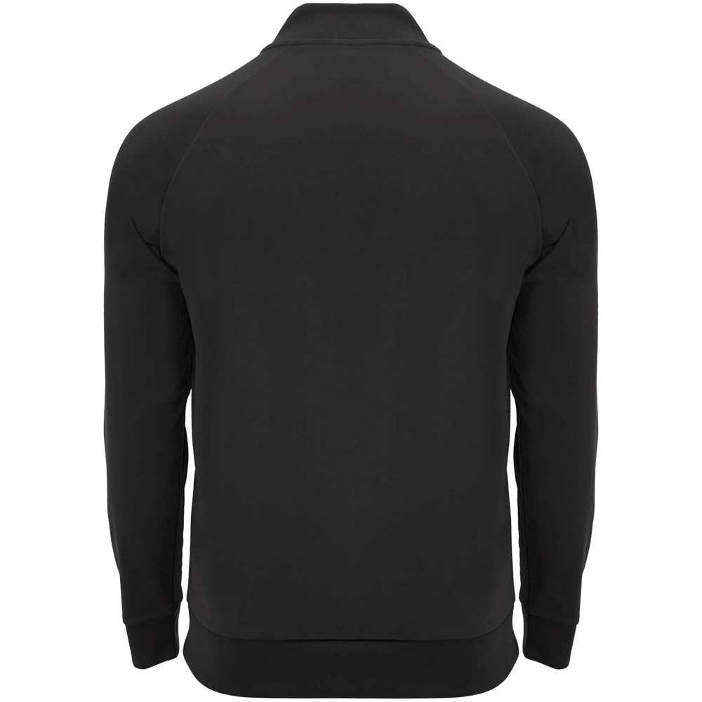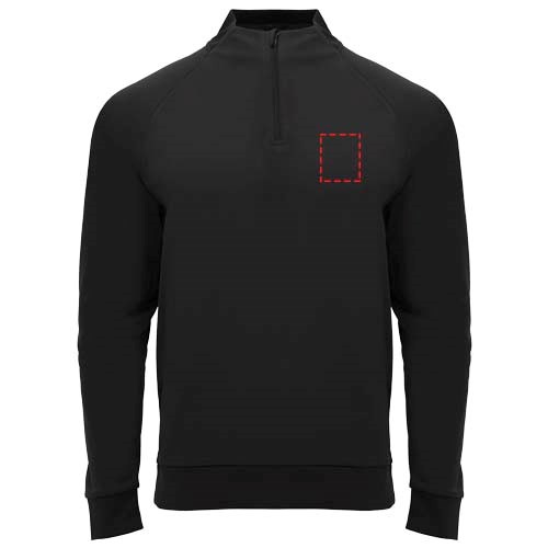 Technische stof. Raglanmouwen. Fleece aan de binnenkant. Kraag met halve rits en bijpassende verstevigde bedekte naden. 1x1 rib in kraag, manchetten en zoom. Verwijderbaar label. Sweatshirt passend bij Neapolis broek.
