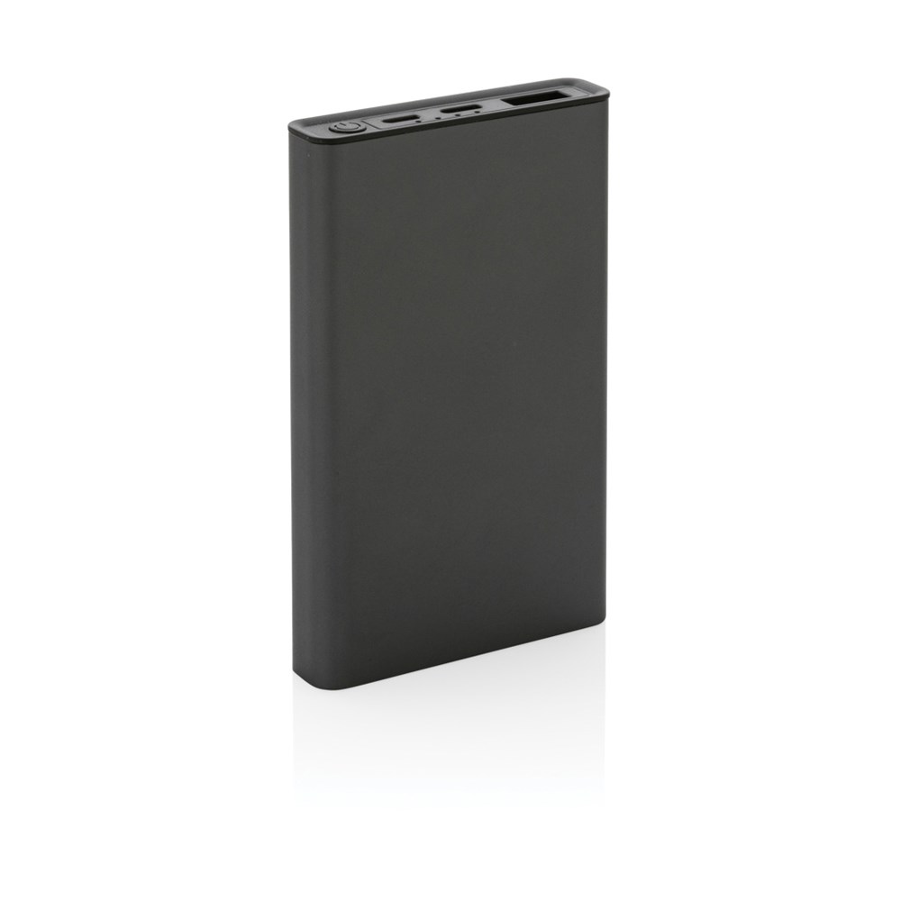 Powerbank gemaakt met RCS (Recycled Claim Standard) gecertificeerd gerecycled aluminium en ABS. Totaal gerecycled materiaal: 36% op basis van het totale gewicht van het item. RCS-certificering zorgt voor een volledig gecertificeerde toeleveringsketen van de gerecyclede materialen. Aluminium verliest zijn eigenschappen niet in het recyclingproces en kan eindeloos worden gerecycled. De powerbank bevat een duurzame klasse A 5.000 mAh lithium-polymeerbatterij. De stroomindicatoren geven het resterende energieniveau aan, zodat u altijd weet wanneer u moet opladen. Artikel en accessoires 100% PVC-vrij. Inclusief type C laadkabel gemaakt van RCS gecertificeerd gerecycled aluminium, TPE en PET. Verpakt in FSC® mix verpakking. USB-output 5/2.4A, Type C-input 5V/2.4A. Type C-input2,4A. Micro-USB-output 5V/2A.