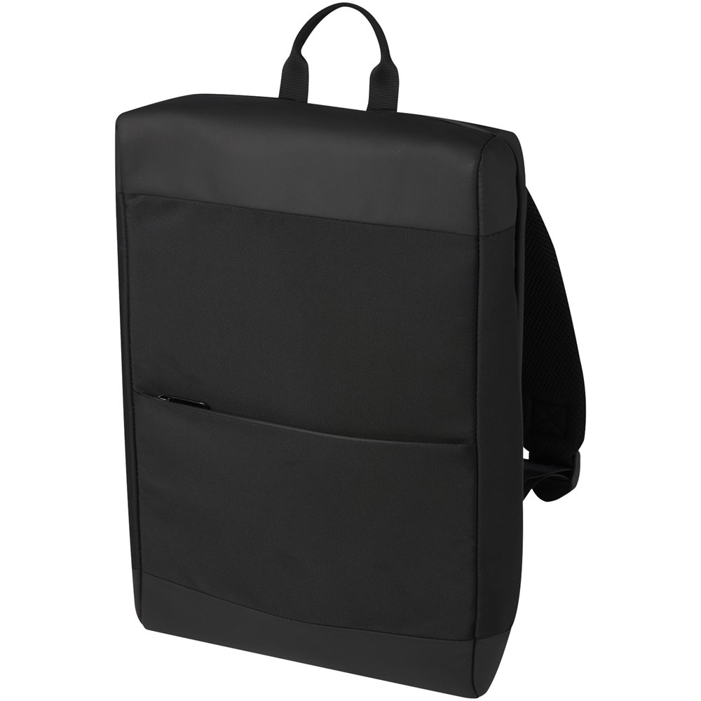 De Rise rugzak is gemaakt van duurzaam 900D GRS-gerecycled polyester en heeft alle noodzakelijke functies. Voorzien van een gewatteerde laptophoes voor een 15,6 inch laptop, een extra hoes voor een klein notitieboek of tablet en vakken met ritssluiting voor kleinere artikelen. Bovendien is er aan de binnenkant een elastische band voor het plaatsen van een waterfles. De achterkant van de rugzak heeft een handige elastische band, waardoor deze gemakkelijk aan een trolley kan worden bevestigd.