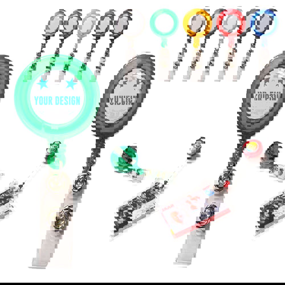 Transparante kaarthouder met trekkoord en clip. Bedrukking op de houder middels doming. Trekkoord is 500mm lang.