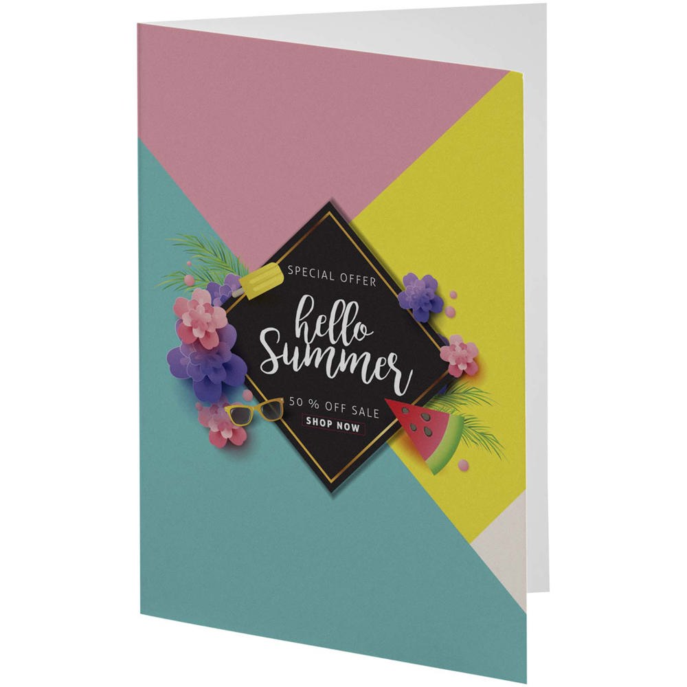 De Herald A6 wenskaart is gemaakt van hoogwaardig 320 g/m² karton en kan bedrukt worden met je eigen ontwerpen, zowel aan de buiten- als binnenkant. Verhoog de uitstraling van je ontwerpen met hotstampfolie en reliëfdruk, zodat je wenskaarten een extra dimensie krijgen. Wordt standaard geleverd met een witte envelop. Kaartformaat: 105 x 148 mm.