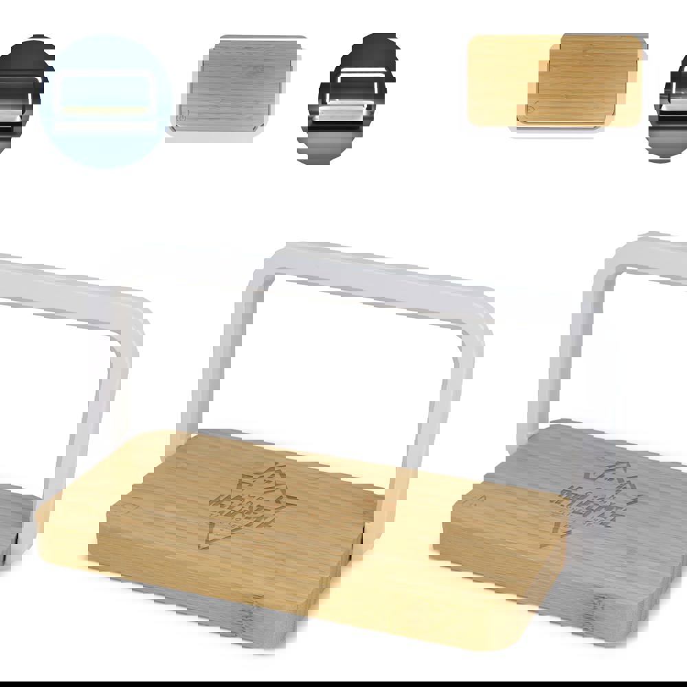 Deze stijlvolle bamboe draadloze oplader combineert een natuurlijke uitstraling met optimale functionaliteit. Met 15W output laadt hij je telefoon snel draadloos op. Het geïntegreerde LED-lampje is dimbaar en zorgt voor sfeervolle verlichting op je nachtkastje. Inclusief USB-C kabel.