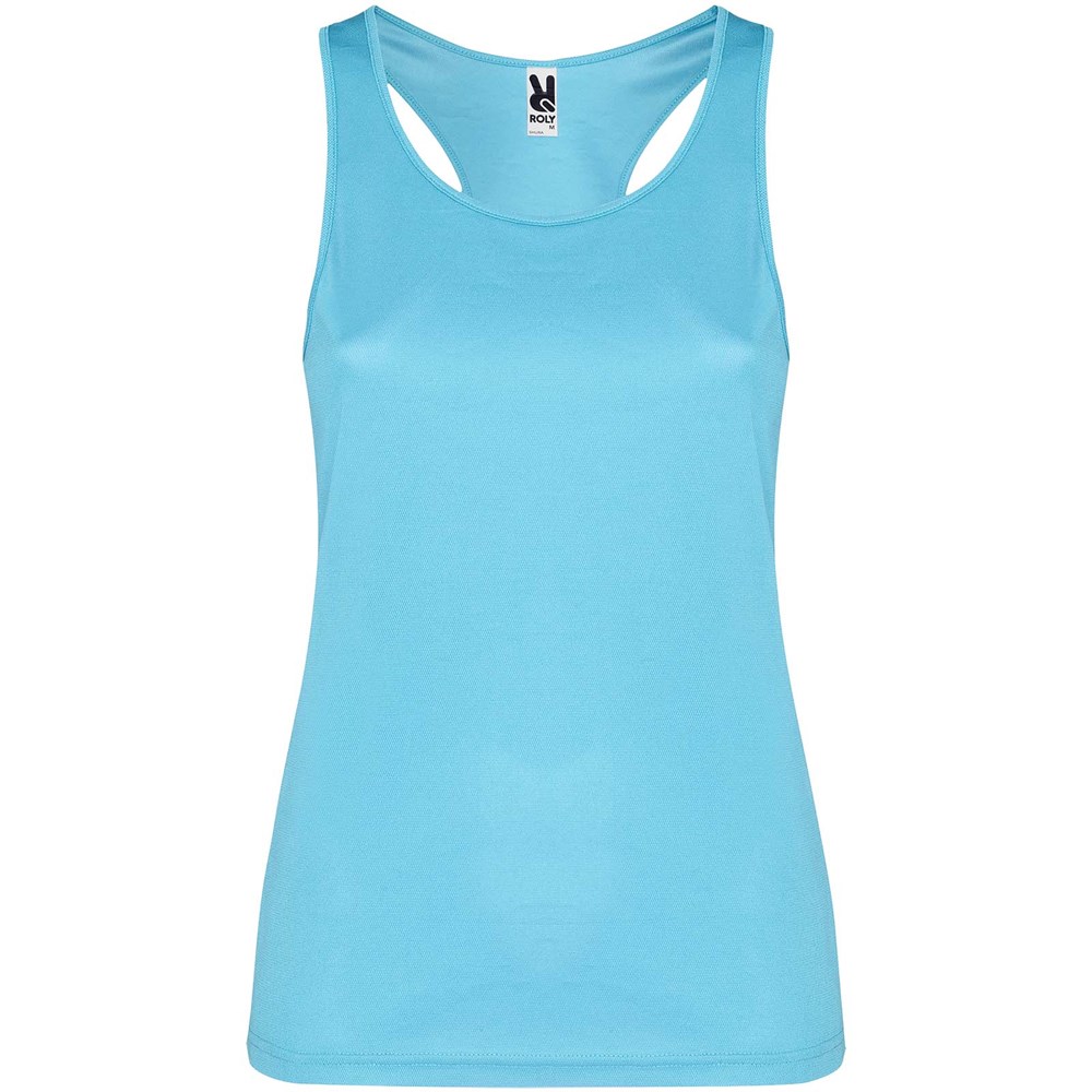 Technische, ademende, gemakkelijk te wassen en te drogen stof. Geribde armsgaten en halslijn. Racerback en zijnaden. Verwijderbaar label.
