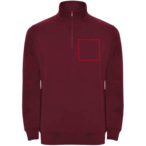 Sweatshirt met halve rits in dezelfde kleur en staande kraag. Binnenkant van de kraag in dezelfde kleur. Versterkte naadafdekkingen aan de binnenzijde van de kraag. Manchetten en tailleband in ribboord 1x1. Het model is 185 cm en draagt maat M.