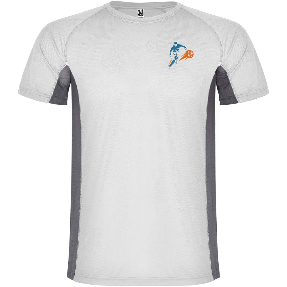 Technische en ademende stof. Een combinatie van twee polyesterstoffen: Hoofdstof van birdseye-stof, zijpanelen en binnenmouw van micro-geperforeerde stof. Ronde hals met binnenin versterkte bedekte naden. Verwijderbaar label.