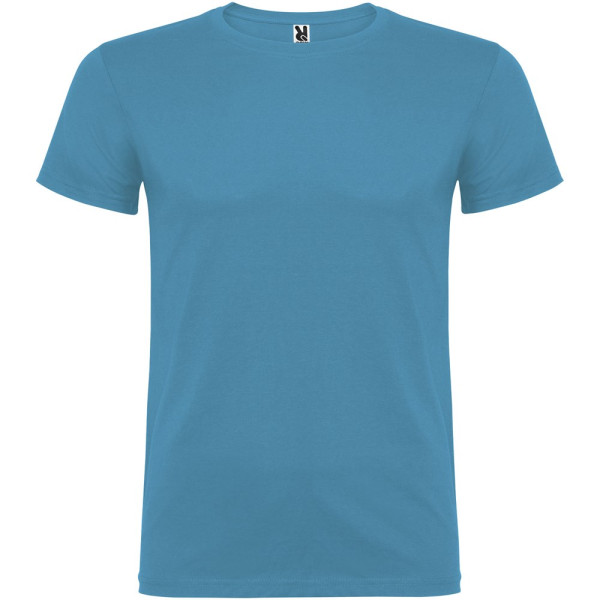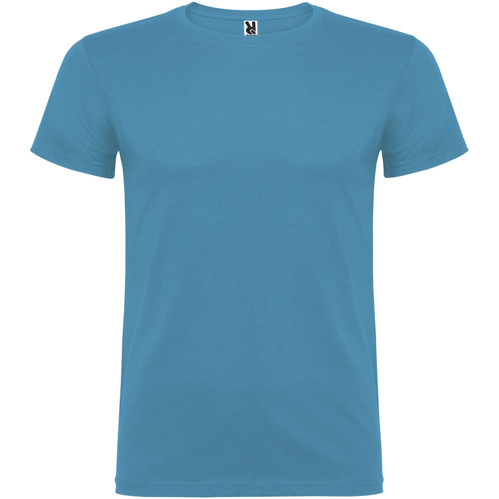 T-shirt met korte mouwen en dubbellaagse ronde hals van elastaan, gemaakt van buisvormige stof voor volwassenen. Versterkte bedekte naden in de kraag. Verwijderbaar etiket. Het model is 190 cm en draagt maat L.