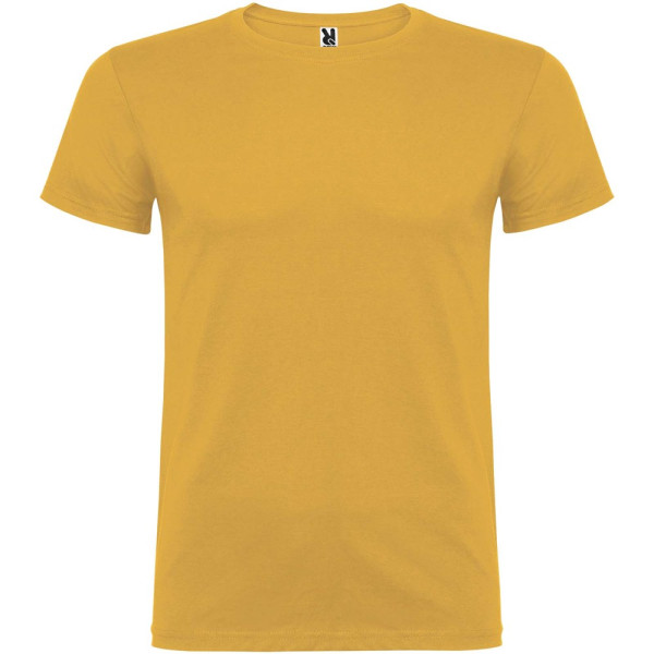 T-shirt met korte mouwen en dubbellaagse ronde hals van elastaan, gemaakt van buisvormige stof voor volwassenen. Versterkte bedekte naden in de kraag. Verwijderbaar etiket. Het model is 190 cm en draagt maat L.