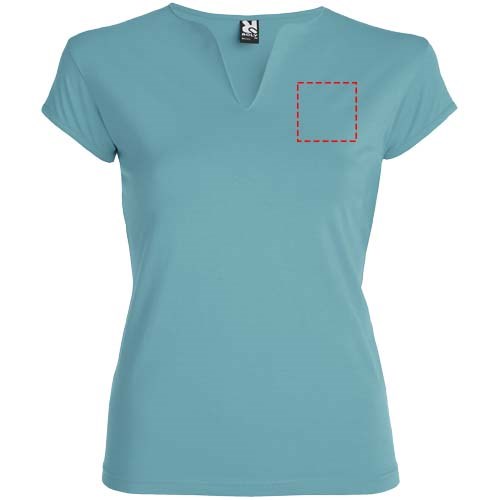 Getailleerd T-shirt met ronde hals en V-opening aan de voorkant. Afgezette halve mouw en zijnaden. Hoogwaardige stof voor een zachte en aangename touch. Verwijderbaar label. Het model is 179 cm en draagt maat S.
