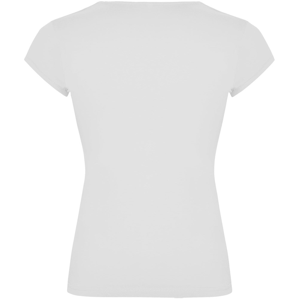 Getailleerd T-shirt met ronde hals en V-opening aan de voorkant. Afgezette halve mouw en zijnaden. Hoogwaardige stof voor een zachte en aangename touch. Verwijderbaar label. Het model is 179 cm en draagt maat S.