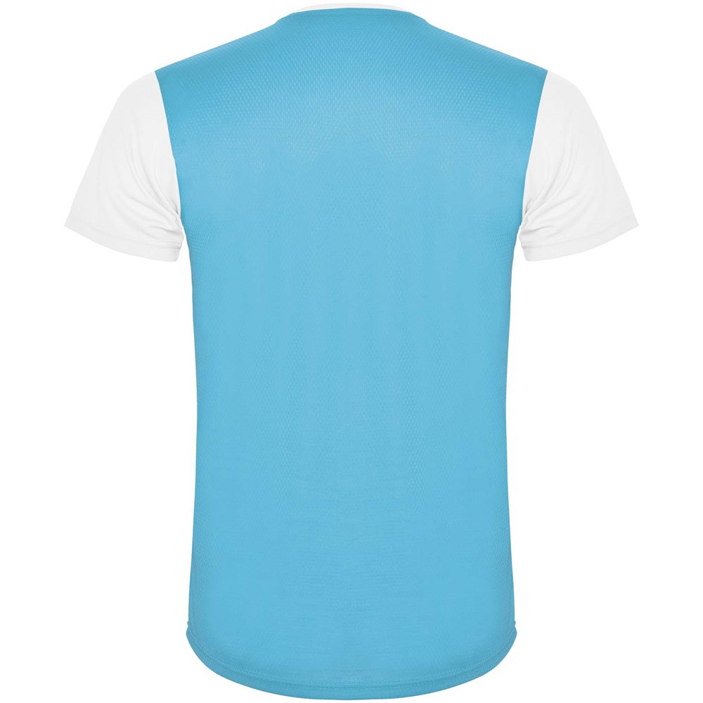 Gemakkelijk drogende, technische en ademende stof. Ronde hals. Combinatie van twee polyesterstoffen op de rug en schouders. Birdseye-stof aan de voorkant en ademende 3D-meshstof aan de achterkant. Stof voorbereid voor vochtopname. Decoratieve zigzagsteek aan de zijkanten en schouders. Rugpatroon is iets langer. Verwijderbaar label.