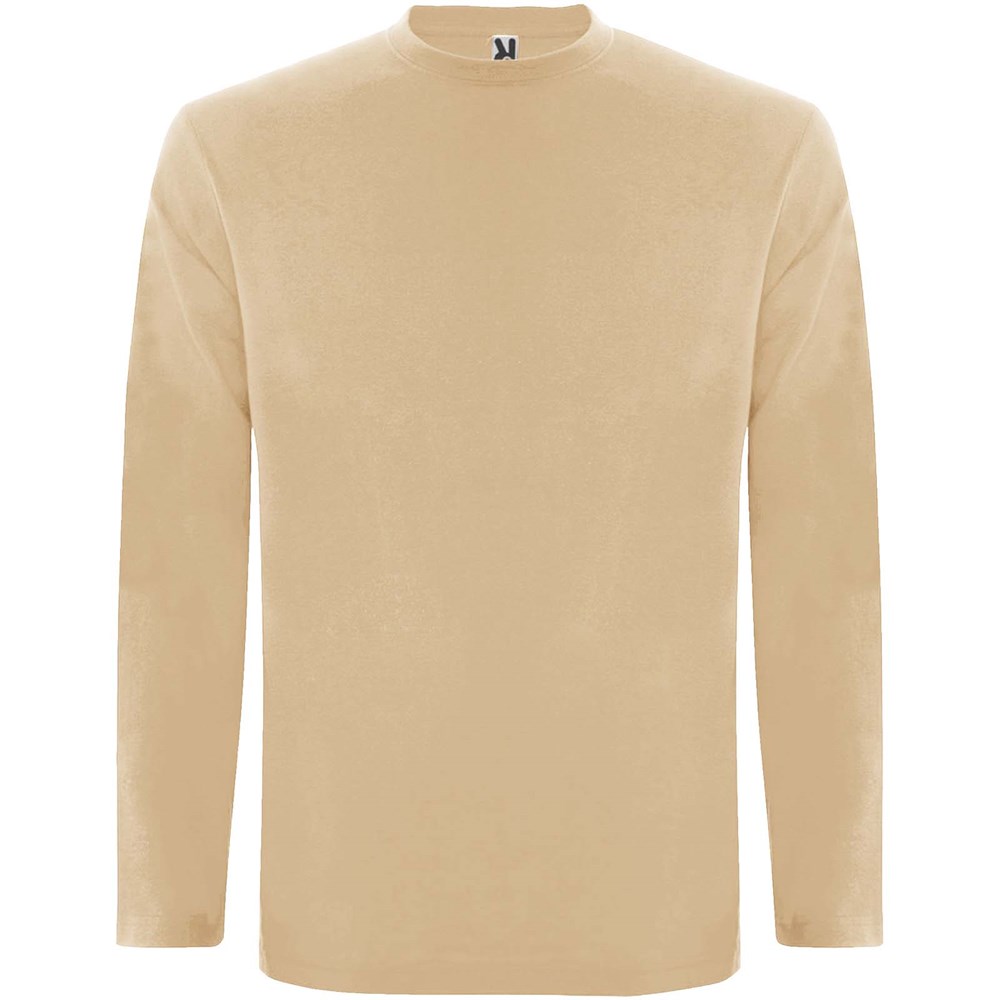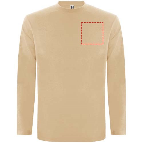 T-shirt met lange mouwen van buisvormige stof en 4-laags ronde hals. Versterkte bedekte naden in kraag en schouders. Geen manchetten. Verwijderbaar etiket. Buisvormig ontwerp in volwassen maten en zijnaden in kindermaten. Het model is 185 cm en draagt maat L.