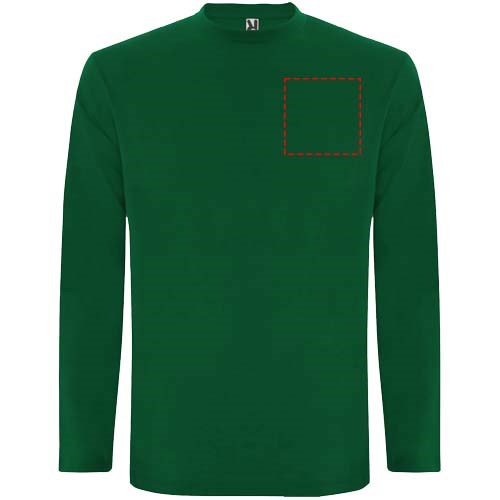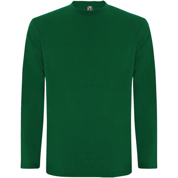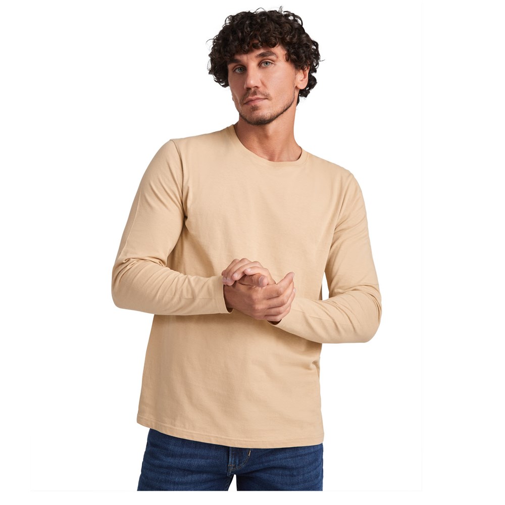 T-shirt met lange mouwen van buisvormige stof en 4-laags ronde hals. Versterkte bedekte naden in kraag en schouders. Geen manchetten. Verwijderbaar etiket. Buisvormig ontwerp in volwassen maten en zijnaden in kindermaten. Het model is 185 cm en draagt maat L.