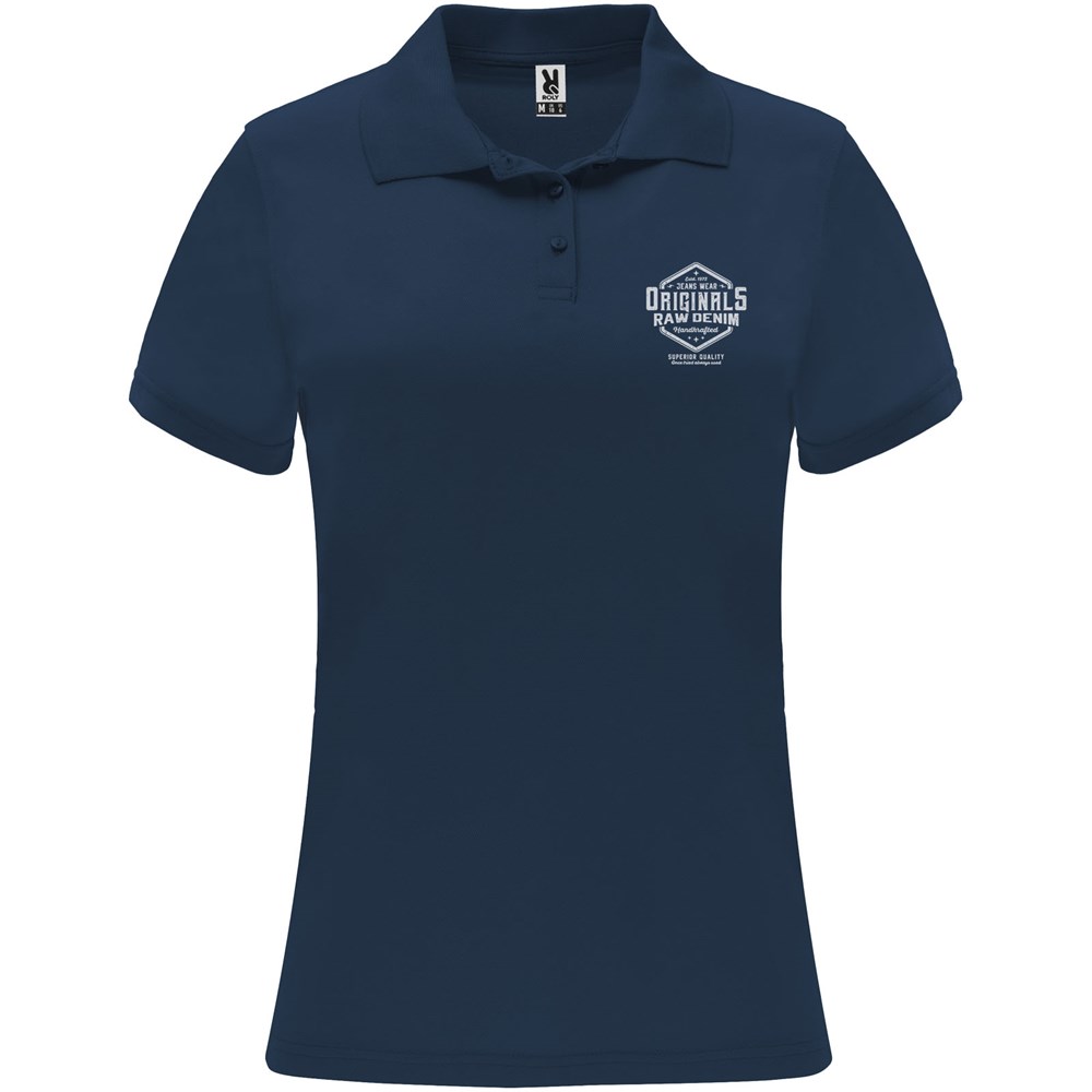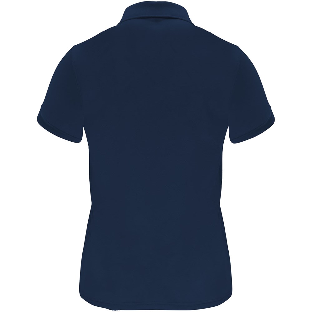 Technisch poloshirt met korte mouwen voor dames. Gebreide kraag met sluiting met drie knopen. Getailleerde snit. Ademende, gemakkelijk wasbare en droge stof. Verwijderbaar etiket. Technische stof. Ademende stof. Het model is 173 cm en draagt maat S.