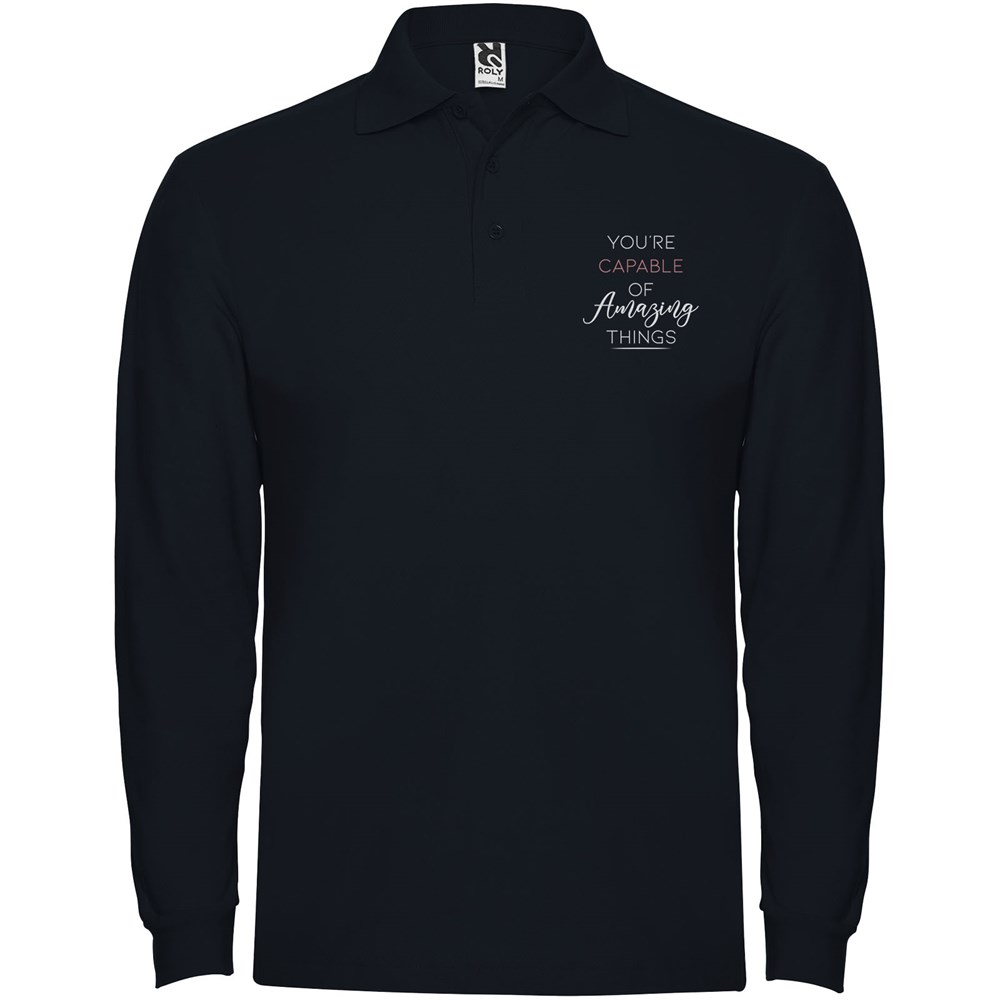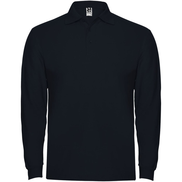 Poloshirt met lange mouwen, geribde kraag en manchetten, sluiting met drie knopen en 1x1 geribde manchetten van elastaan. Versterkte bedekte naden in de kraag. Optionele zak. Verwijderbaar etiket. Het model is 190 cm en draagt maat L.