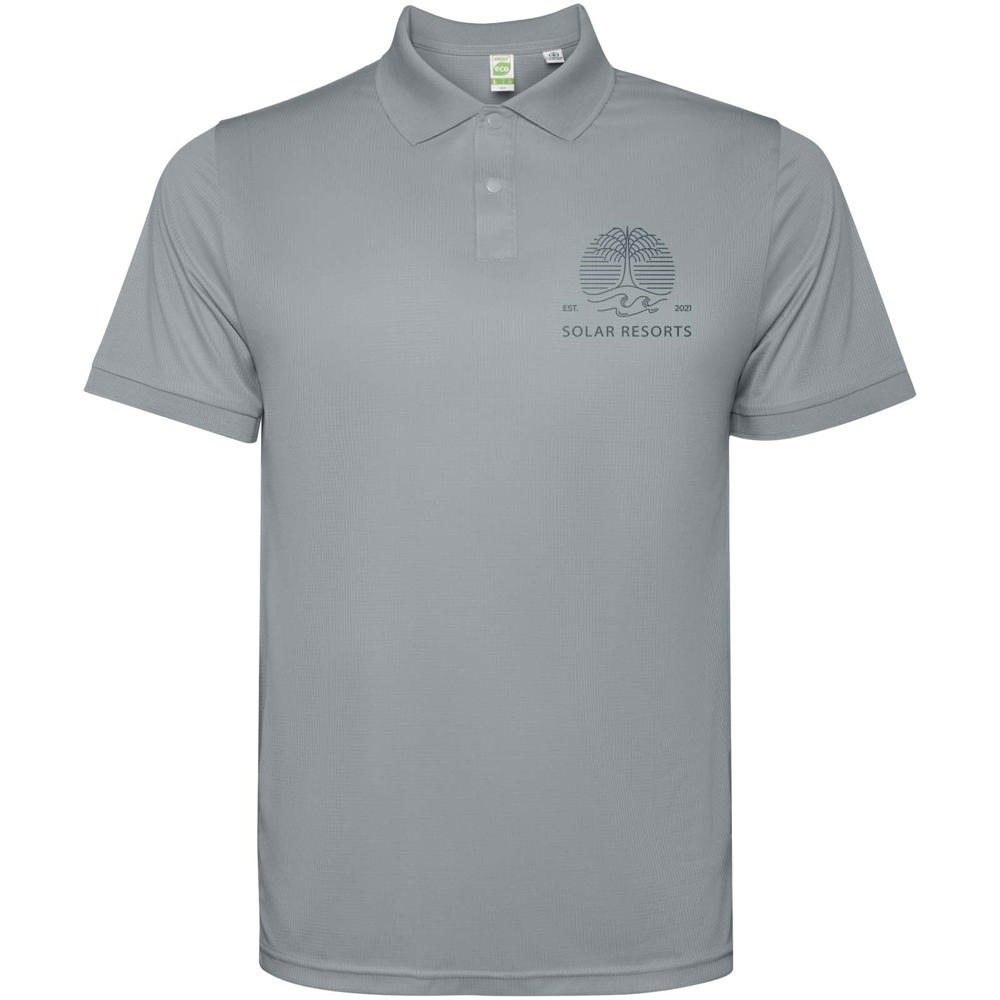 Herenpolo met korte mouwen. Versterkte bedekte naden in de binnenkraag. 1x1 geribde manchetten en kraag. Zijnaden. Knoopsluiting met 3 knopen en zijsplitten.