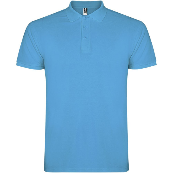 Poloshirt met korte mouwen voor heren. Versterkte bedekte naden in de binnenkant van de kraag. 1x1 geribde manchetten en kraag. Zijnaden. Knoopsluiting met drie knopen en zijsplitten. Optionele zak. Verwijderbaar etiket. Het model is 185 cm en draagt maat L.