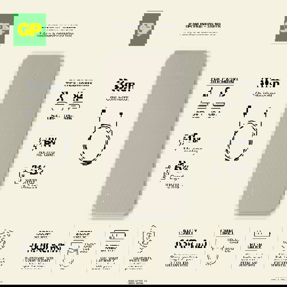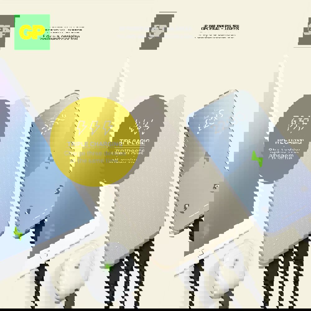 De GP PowerBank combineert betrouwbare stroomvoorziening met een stijlvol design. Met een capaciteit van 10000 mAh kun je drie apparaten gelijktijdig opladen via 2x USB-A en 1x USB-C. De powerbank is uitgerust met een 8-voudige beveiliging voor veilig gebruik en een gegarandeerde lange levensduur. Ideaal voor professioneel en dagelijks gebruik.