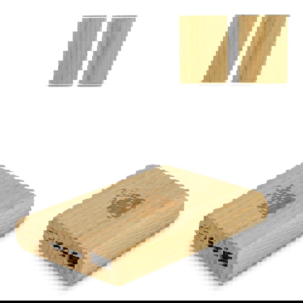 Deze stijlvolle powerbank van duurzaam FSC-gecertificeerd bamboe is de perfecte metgezel voor onderweg. Met een capaciteit van 5.000 mAh laad je jouw apparaten moeiteloos op. Voorzien van zowel USB-A als USB-C uitgangen en een USB-C ingang voor snel en flexibel opladen. Inclusief USB-C kabel.