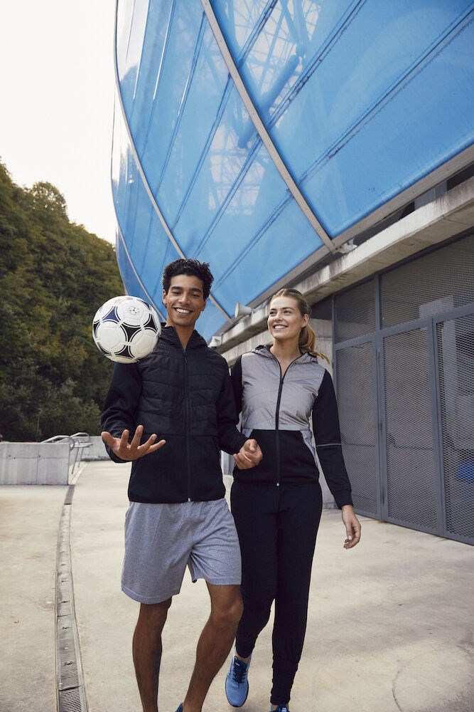 Een licht gewatteerd jack met moderne snit. Kleur 949 heeft grote reflecterende vlakken voor extra zichtbaarheid. De rits aan de voorzijde en de twee zijzakken zijn waterdicht. Verder is het jack afgewerkt met een doorvoer voor een koptelefoon en een eenvoudig te verwijderen label.