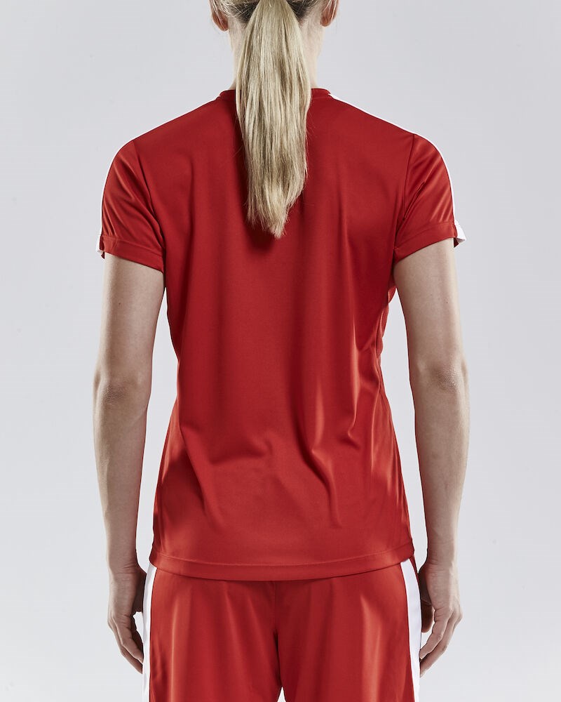 Match jersey made of stretchy and functional fabric offering superior moisture transport for maximum performance. Mesh panels in the armpits provide efficient body-temperature management while great elasticity and ergonomic design ensure comfortable fit and optimal freedom of movement. Female fit. Comes with a V neck that matches the contrasting side stripes.