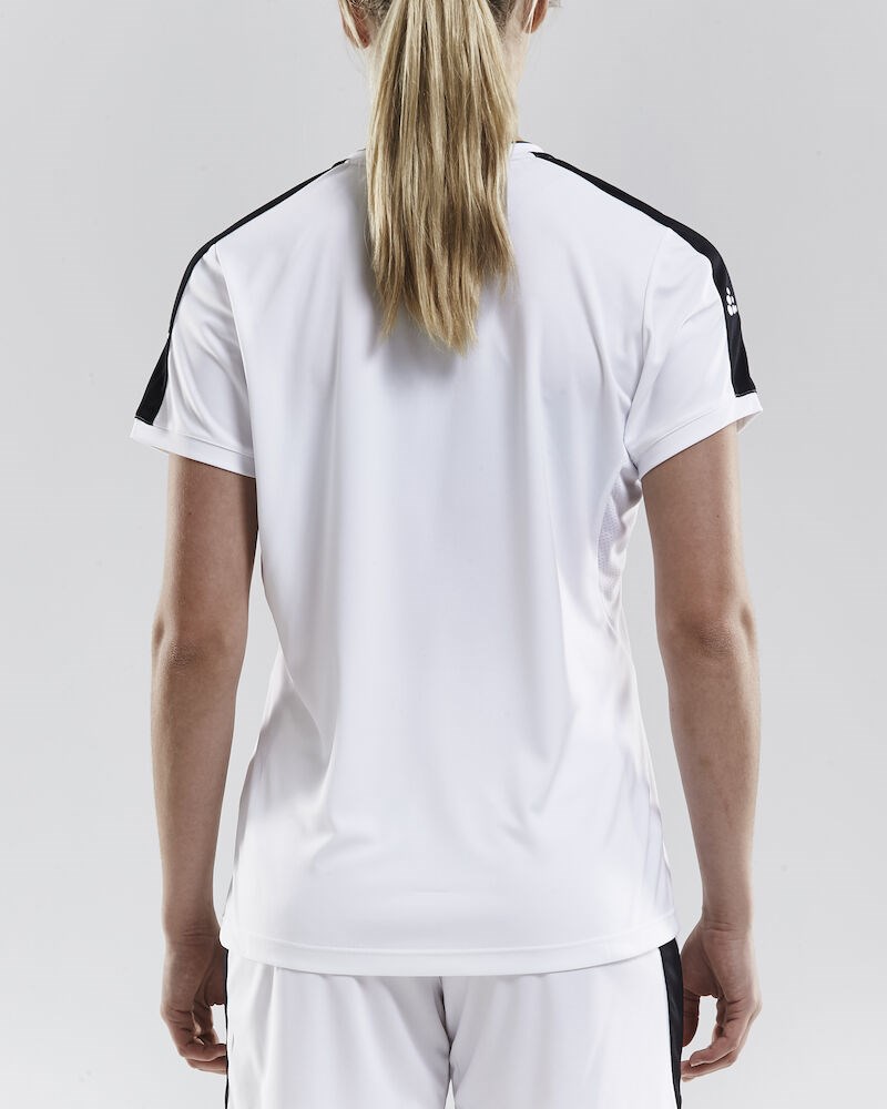 Training tee made of stretchy and functional fabric offering superior moisture transport for maximum performance. Mesh panels in the armpits provide efficient body-temperature management while great elasticity and ergonomic design ensure comfortable fit and optimal freedom of movement. Double-layer V neck in contrast color for a sharp look. Female fit.